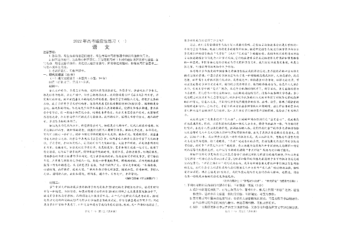 山东省烟台市2022.5高三年级第二次模拟试题语文