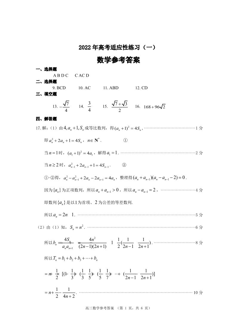 山东省烟台市2022.5高三年级第二次模拟试题数学答案