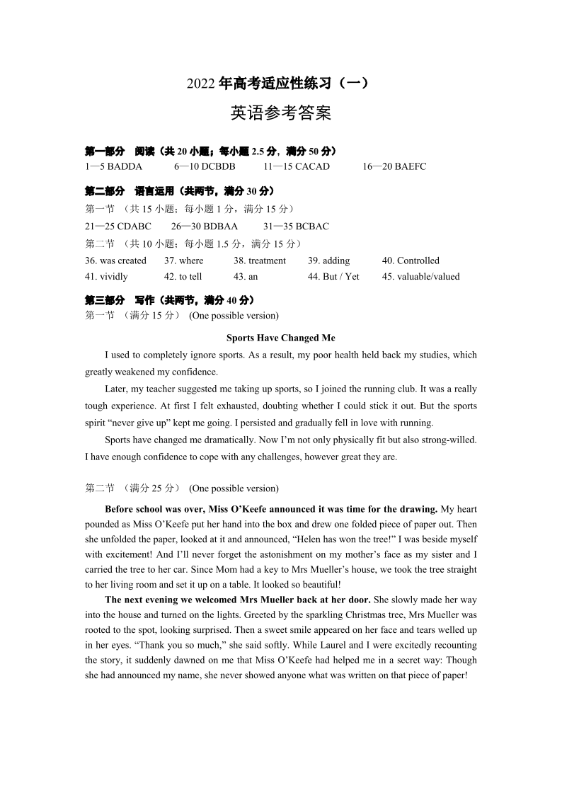 山东省烟台市2022.5高三年级第二次模拟试题英语答案