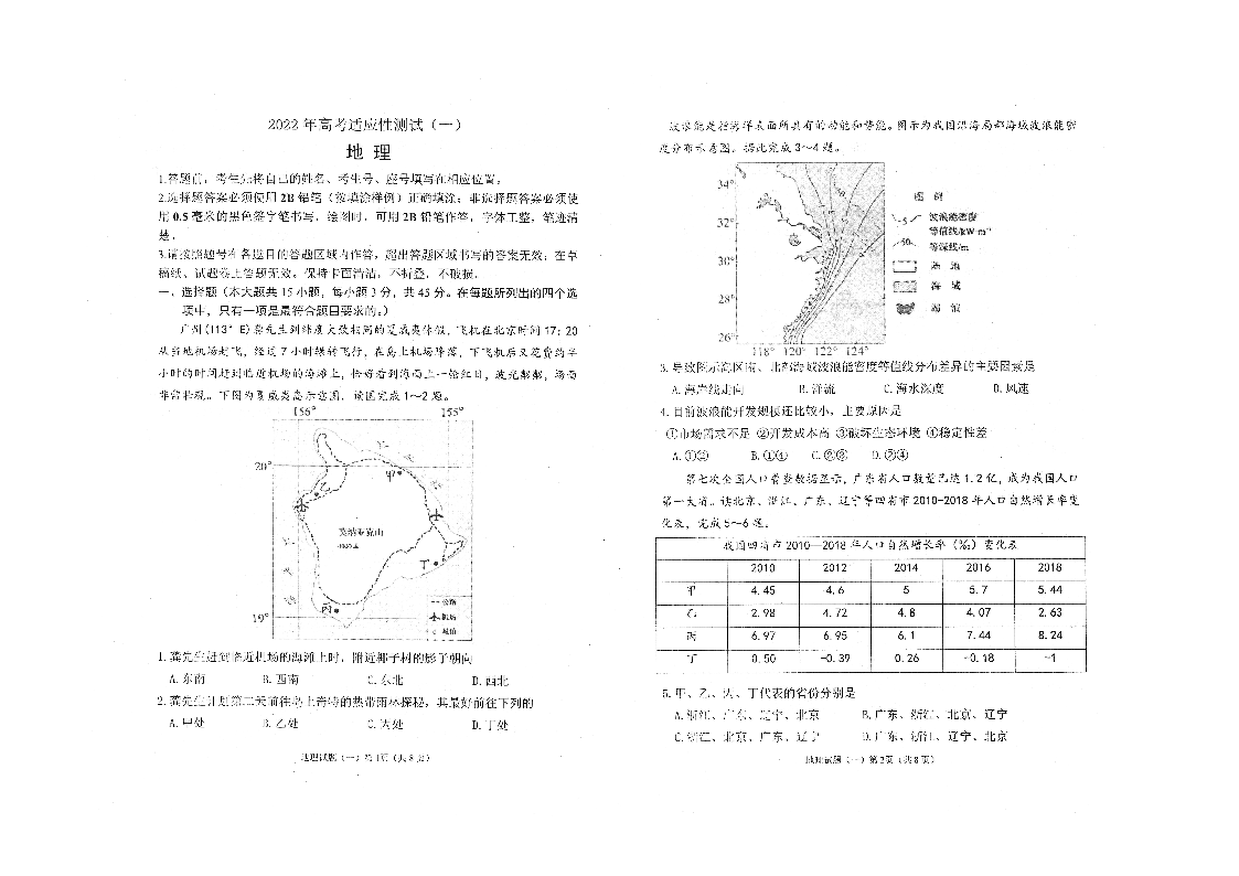 山东省烟台市2022.5高三年级第二次模拟试题地理
