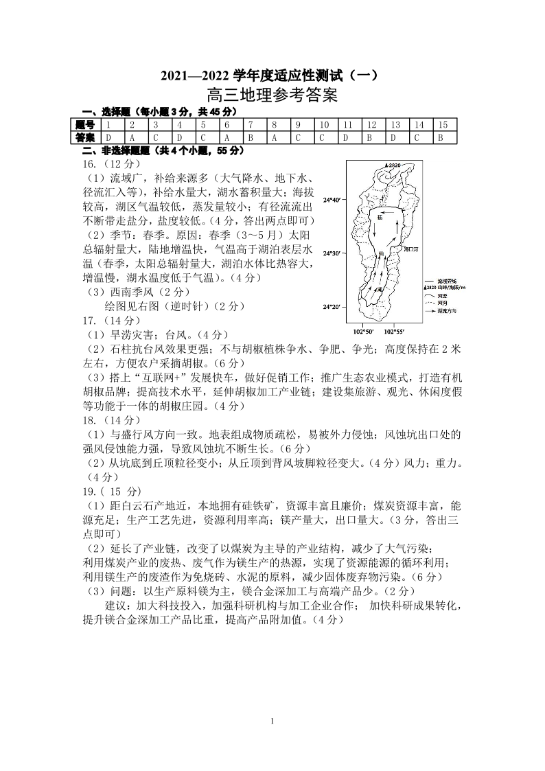 山东省烟台市2022.5高三年级第二次模拟试题地理答案