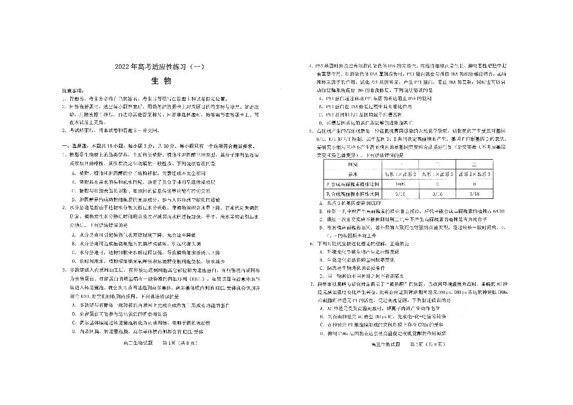 山东省烟台市2022.5高三年级第二次模拟试题生物