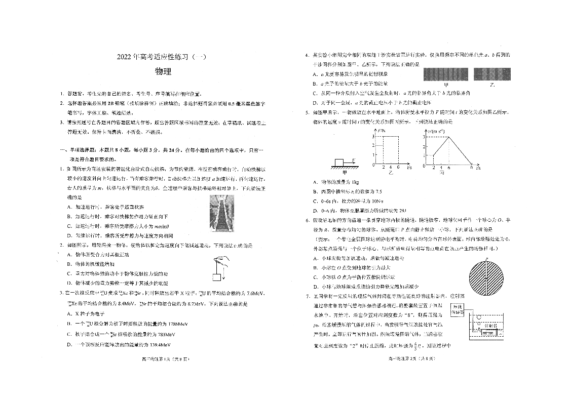 山东省烟台市2022.5高三年级第二次模拟试题物理