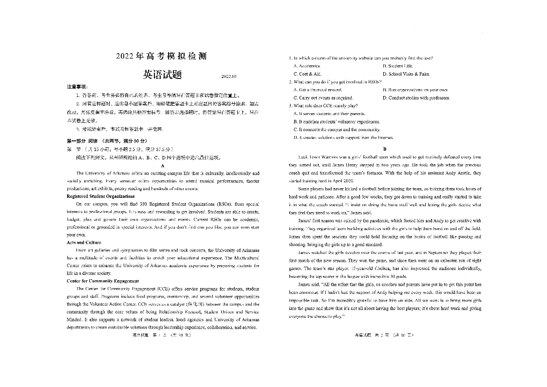 山东省青岛市2022.5高三年级第二次模拟试题英语