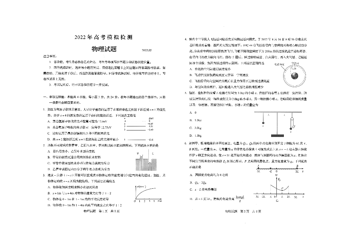 山东省青岛市2022.5高三年级第二次模拟试题物理