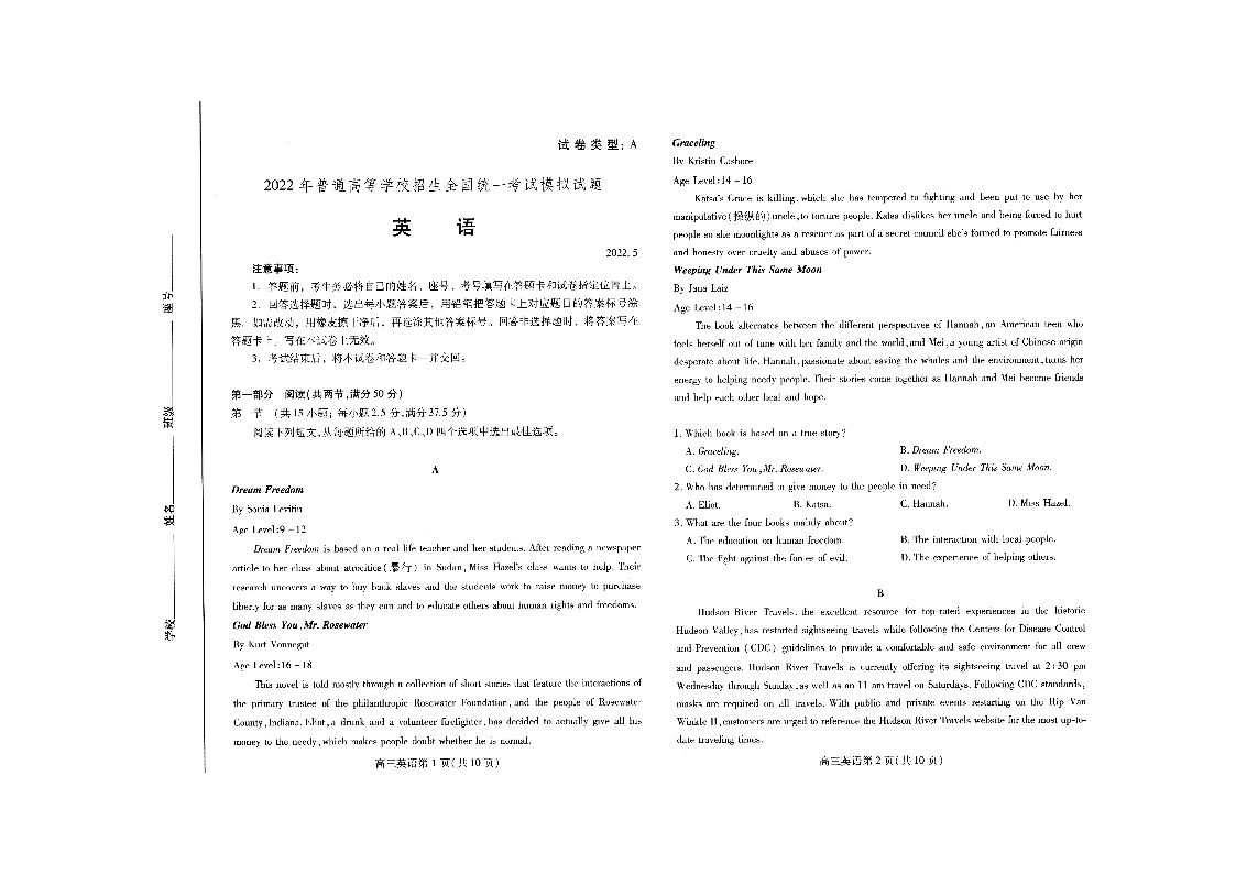 山东省潍坊市2022.5高三年级第三次模拟试题英语