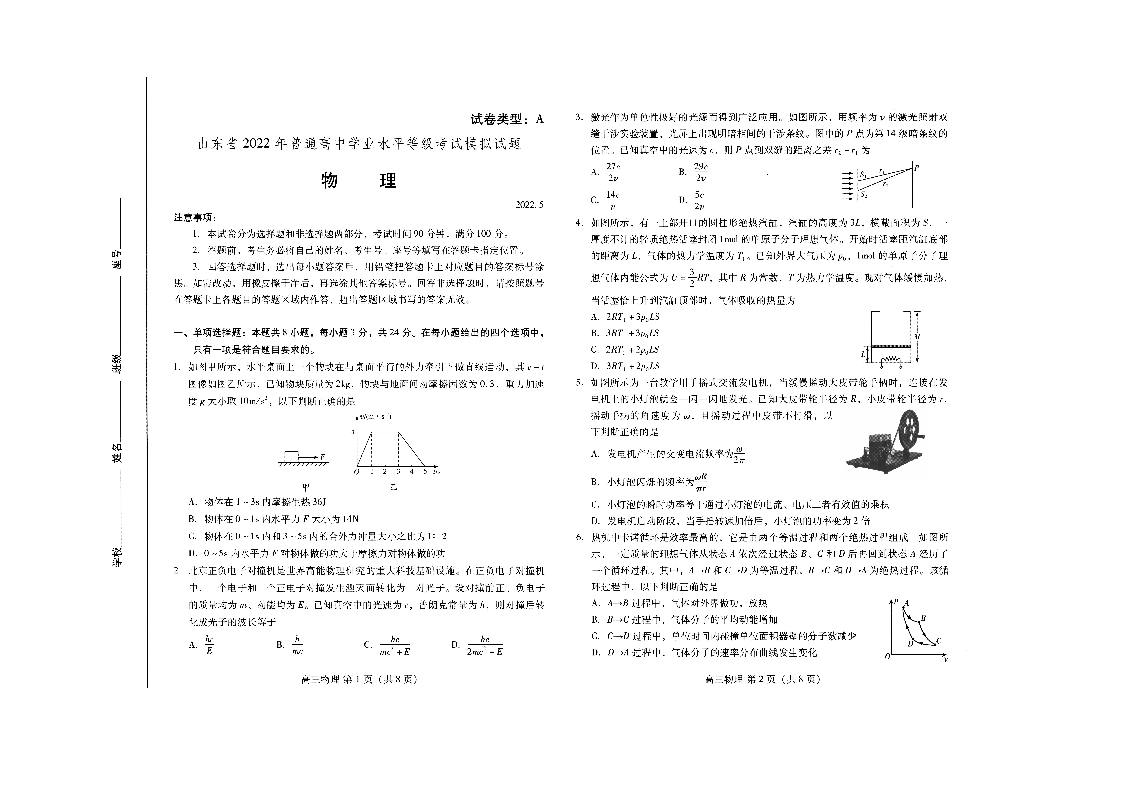 山东省潍坊市2022.5高三年级第三次模拟试题物理