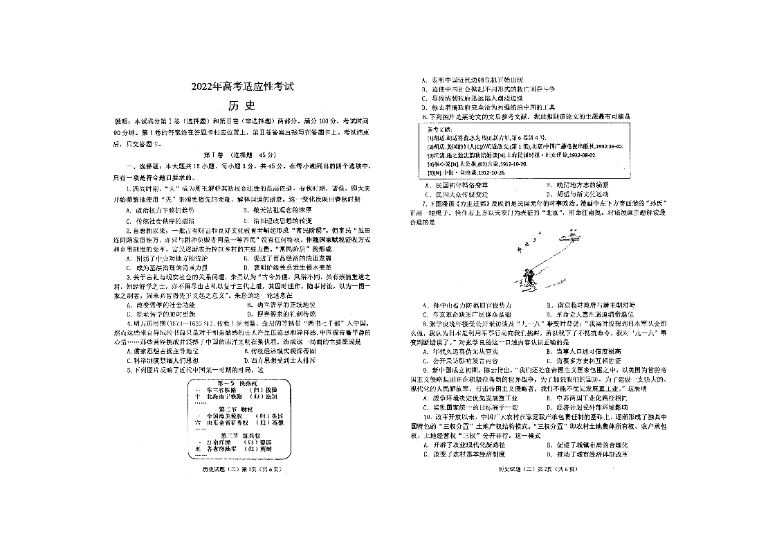 山东省烟台市2022.5高三年级第三次模拟试题历史