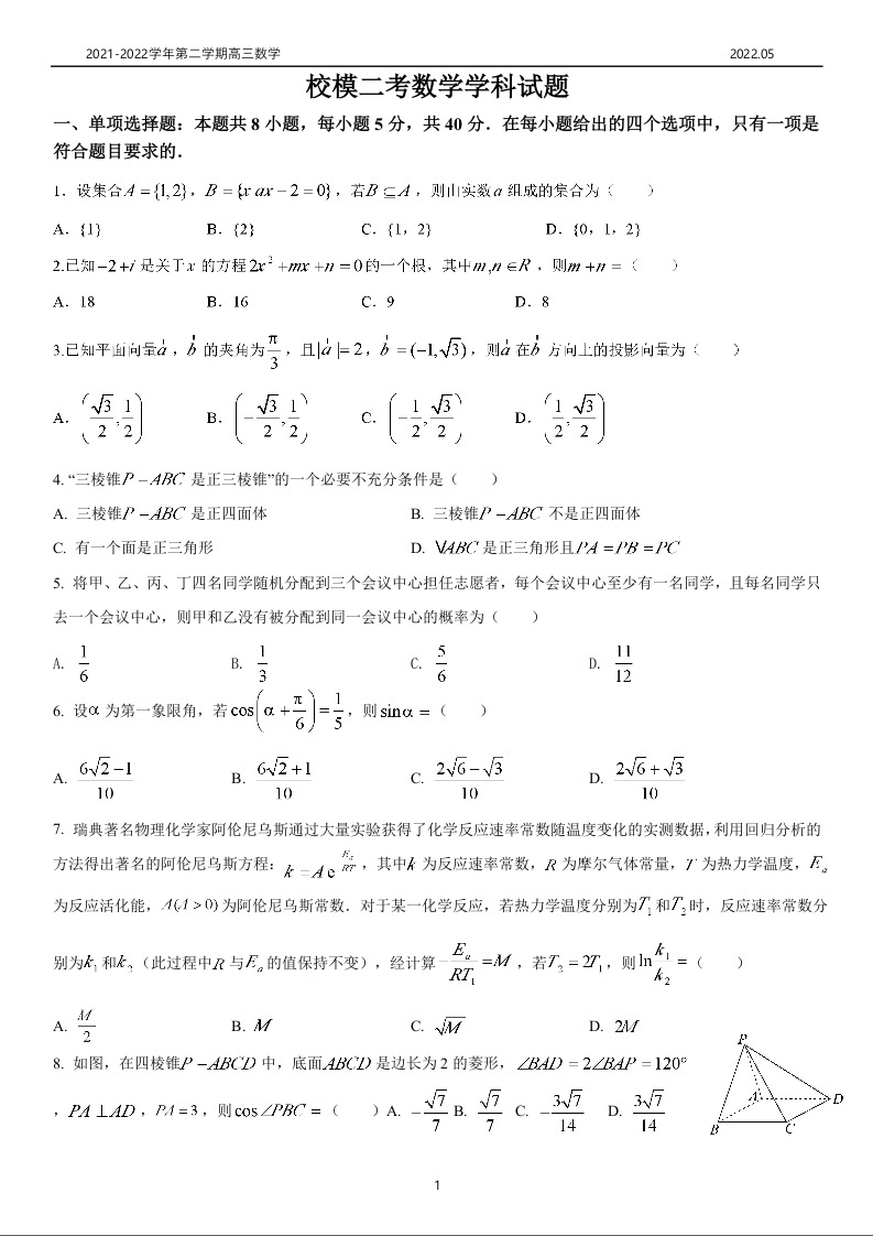 山东省实验中学2022.5高三年级校模二考试题数学