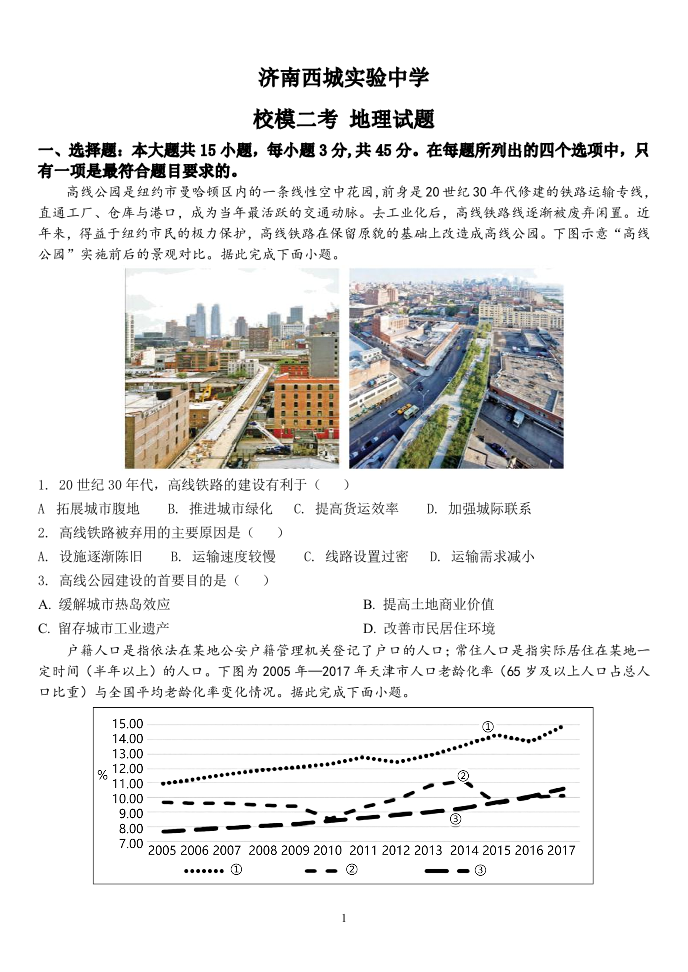 山东省实验中学2022.5高三年级校模二考试题地理