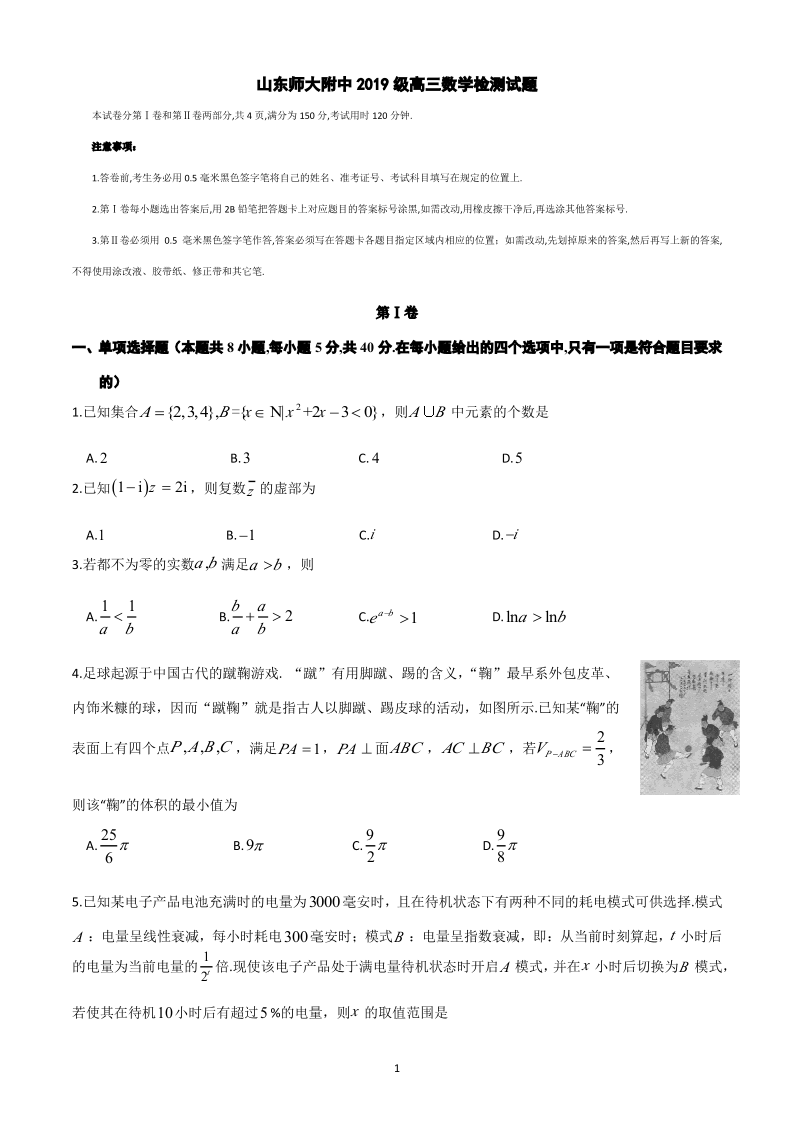 山东省师大附中2022.6高三年级考前模拟检测数学