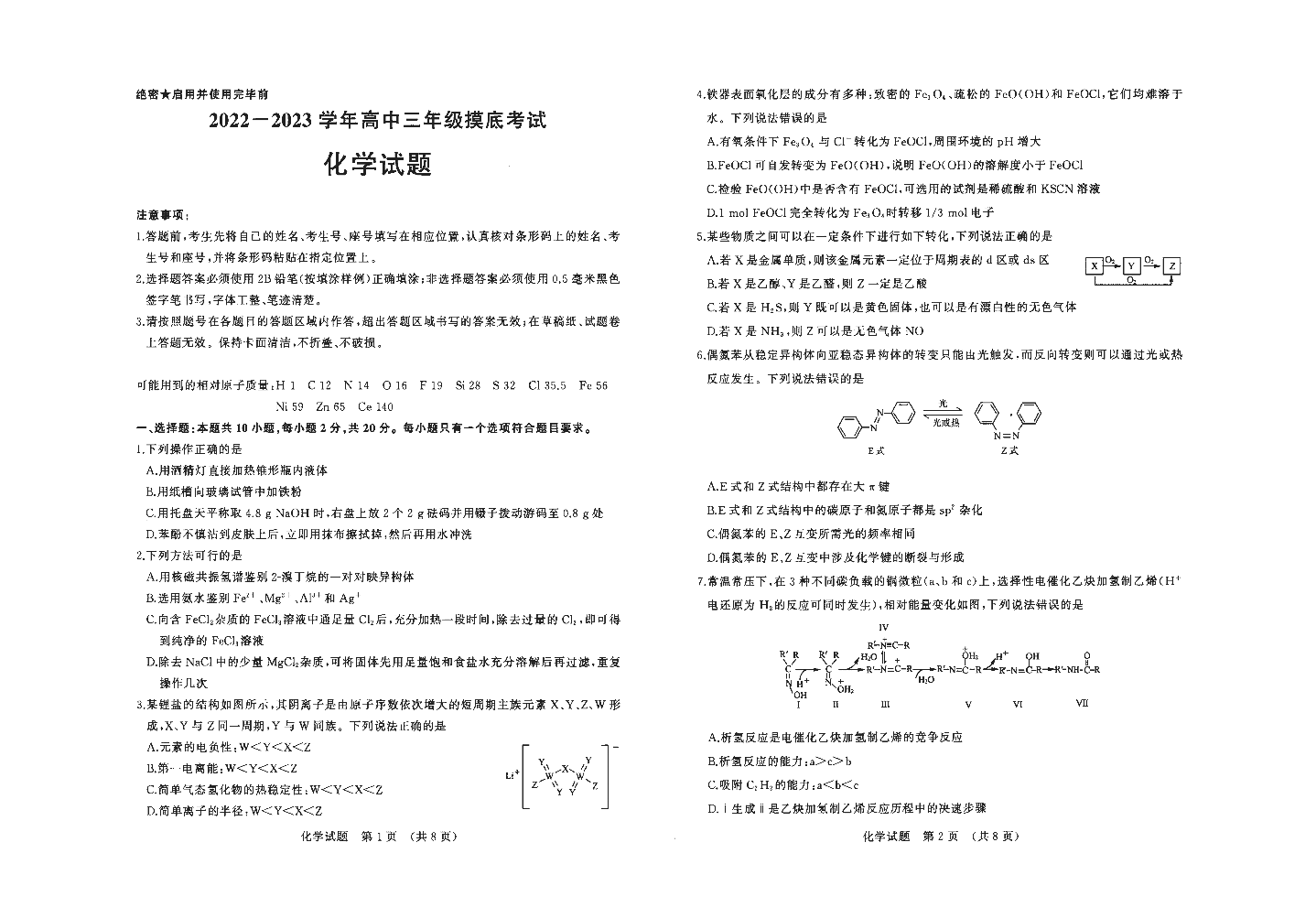 5山东省济南市2022.9高三年级开学摸底检测化学