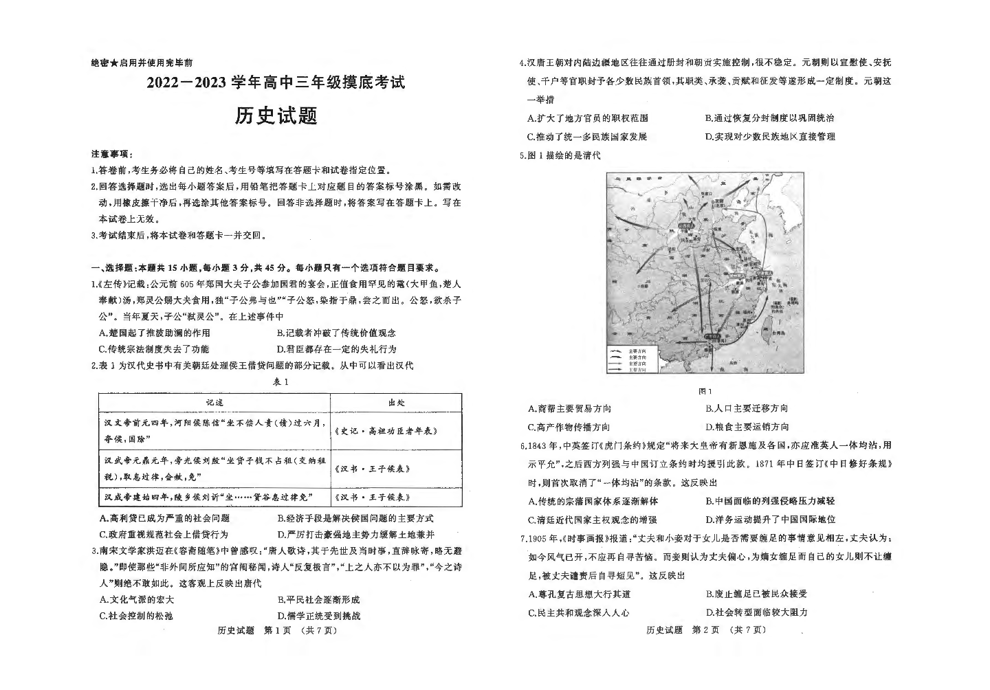 8山东省济南市2022.9高三年级开学摸底检测历史