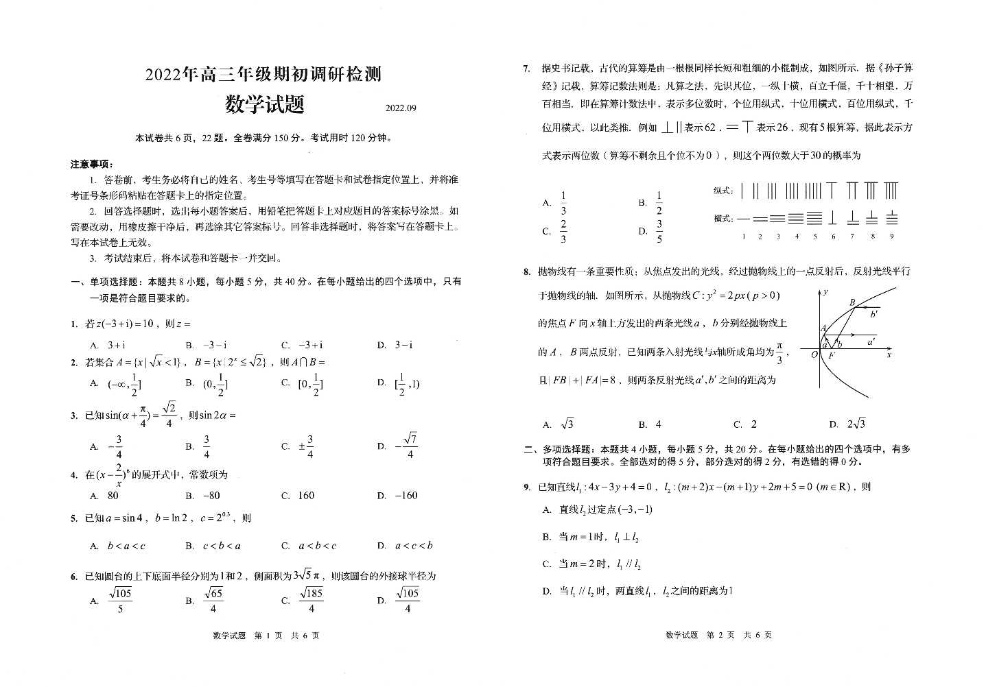 2山东省青岛市2022.9高三年级期初调研检测数学