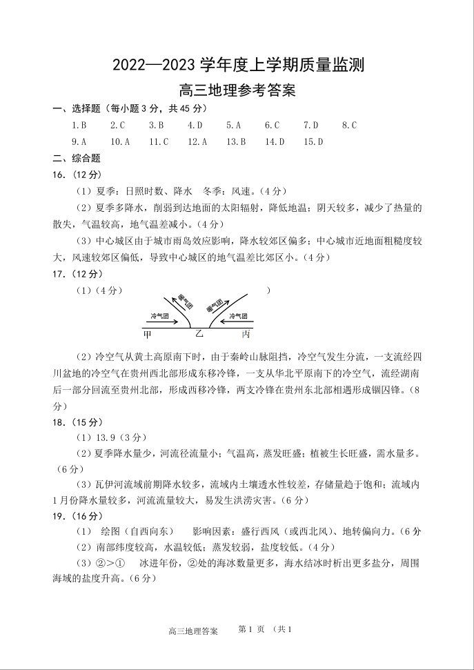 山东省潍坊市区域2022.10高三年级质量监测地理答案