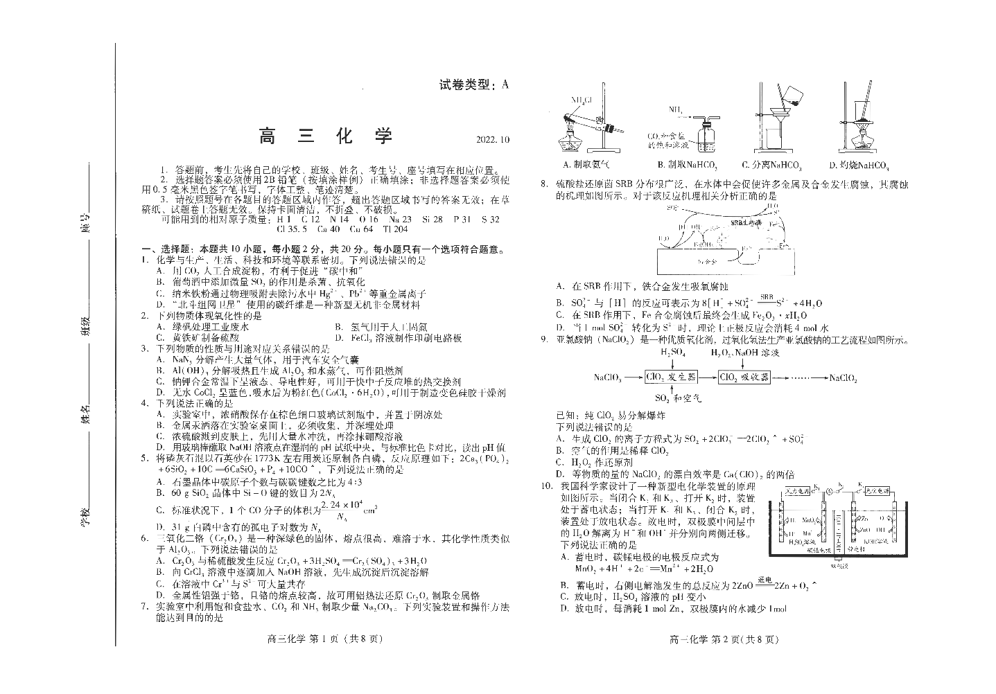 5山东省潍坊市2022.10高三年级优生监测化学