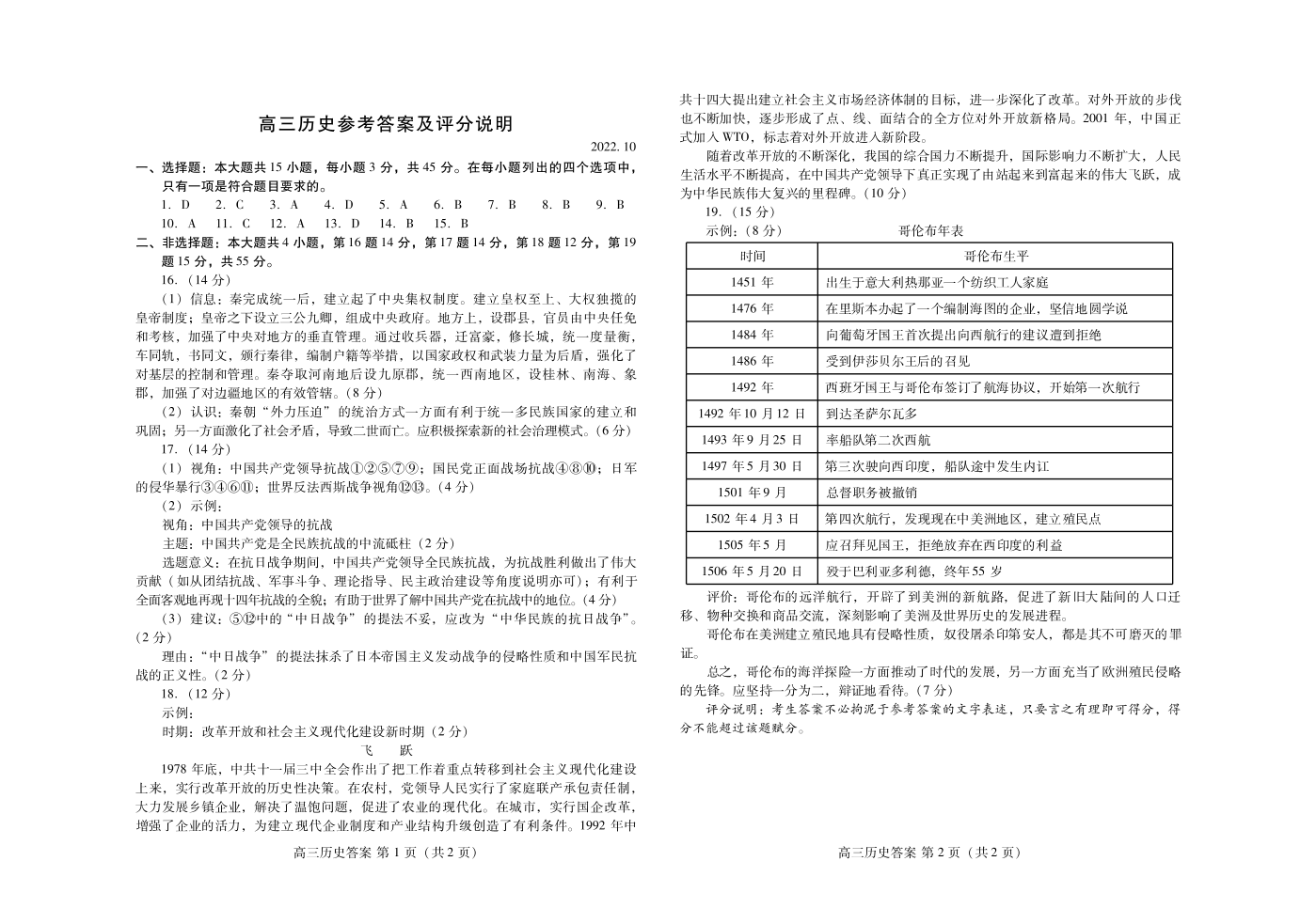 8山东省潍坊市2022.10高三年级优生监测历史答案