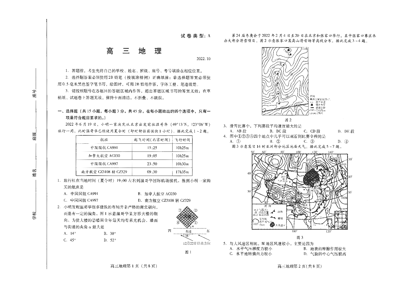 9山东省潍坊市2022.10高三年级优生监测地理