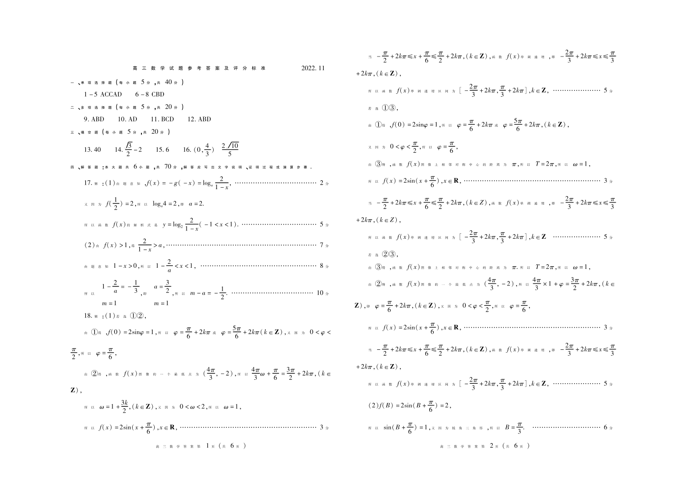 2山东省潍坊市2022.11高三年级期中考试数学答案