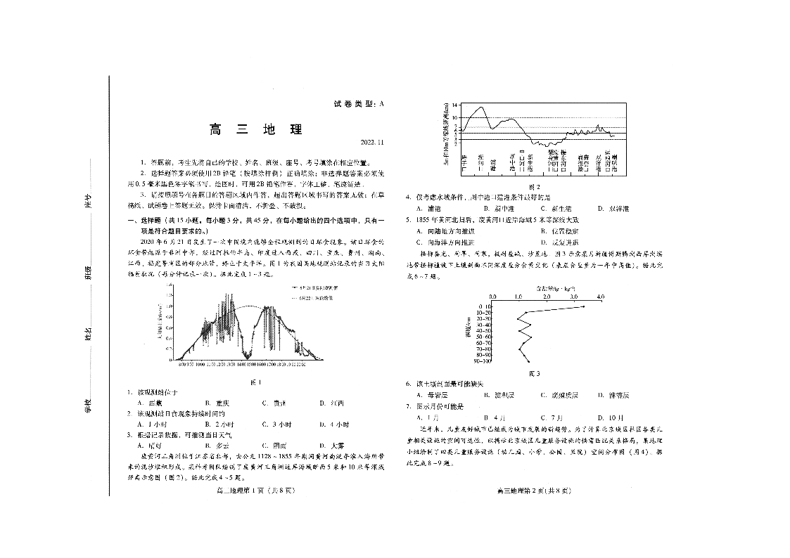 山东省潍坊市2022.11高三年级期中考试地理