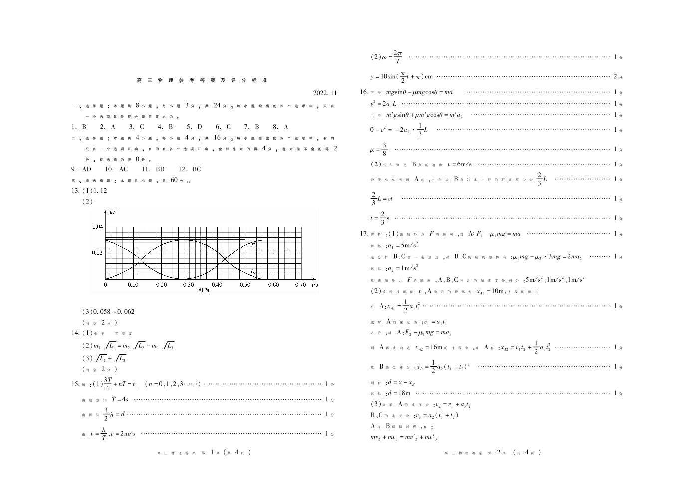 山东省潍坊市2022.11高三年级期中考试物理答案