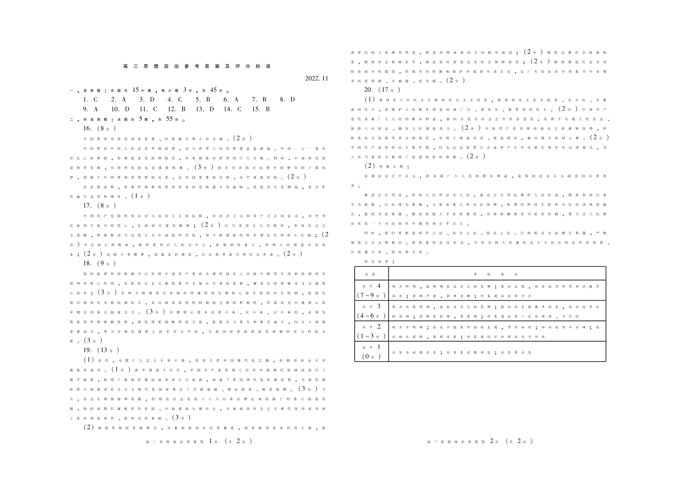 山东省潍坊市2022.11高三年级期中考试政治答案