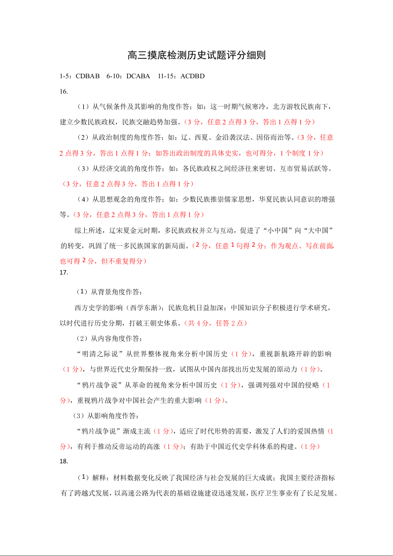 山东省淄博市2022.12高三年级期末考试历史答案