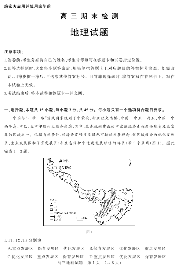 山东省济南市2023.1高三年级期末考试地理