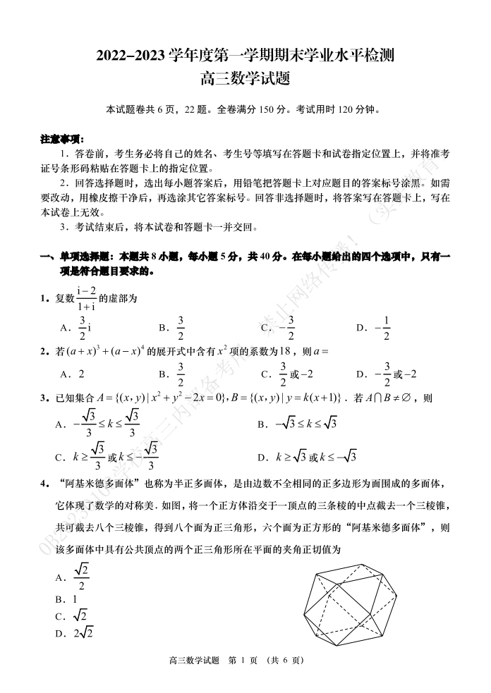 2山东省青岛市2023.1高三年级期末考试数学