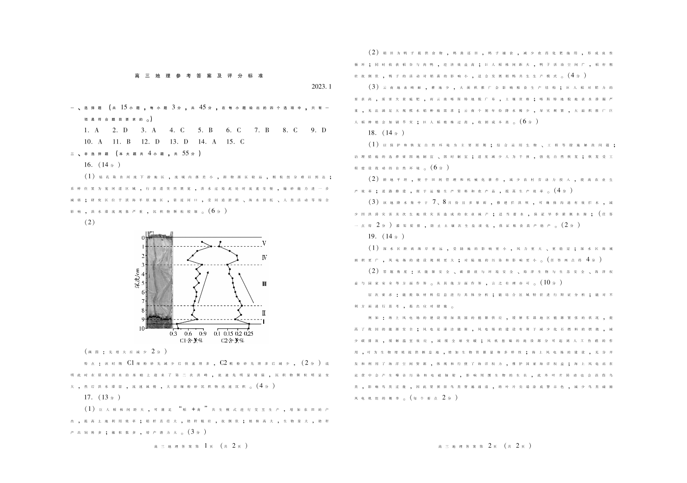 山东省潍坊市2023.1高三年级期末考试地理答案