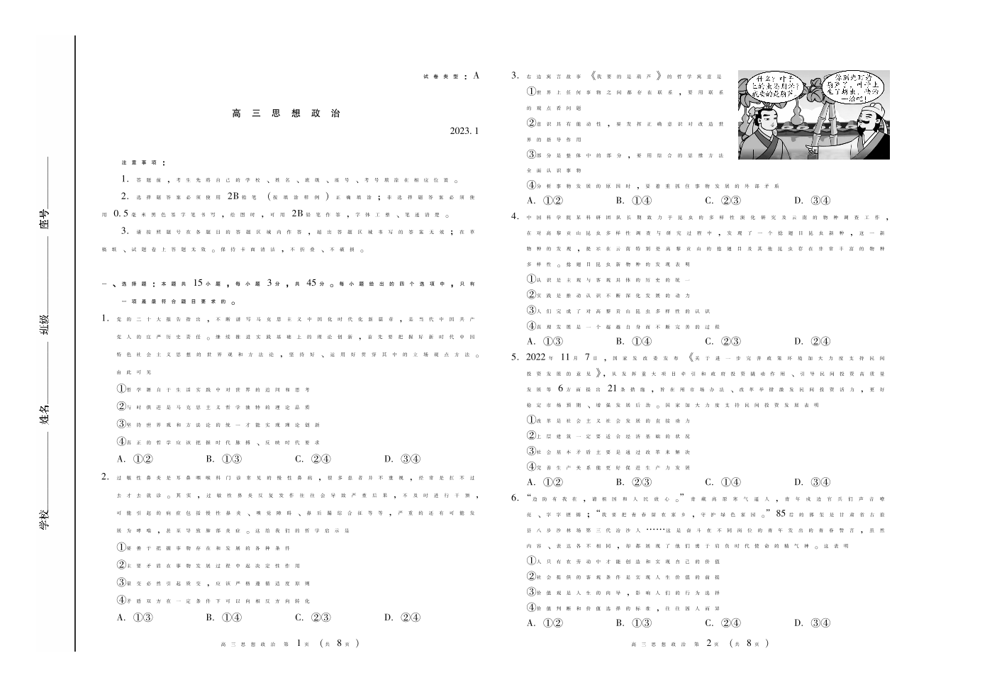山东省潍坊市2023.1高三年级期末考试政治