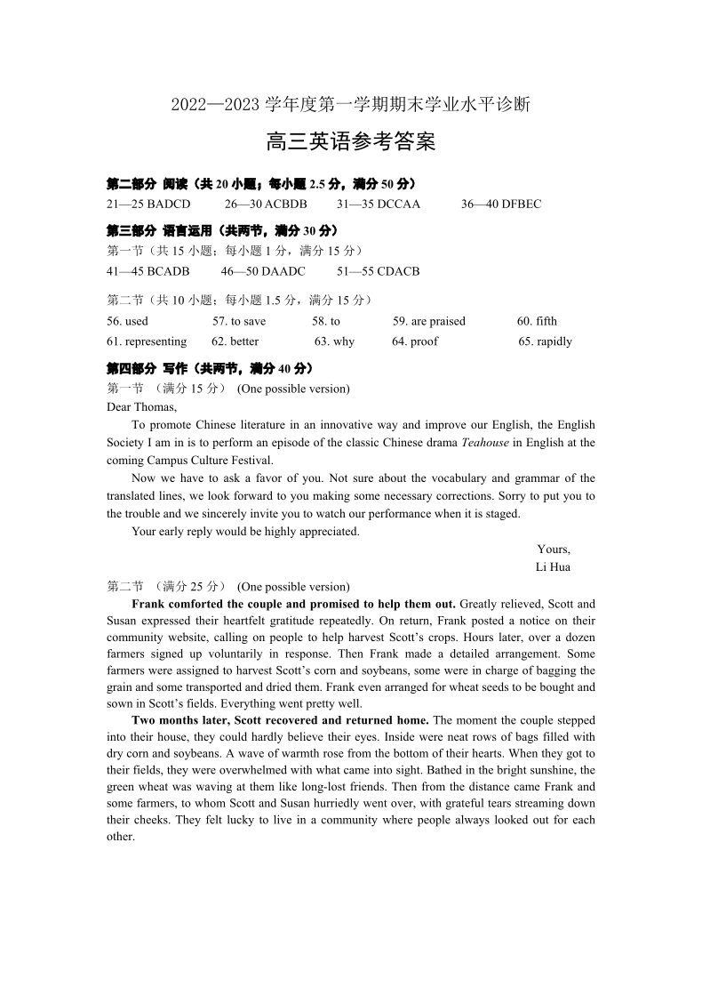 3山东省烟台市2023.1高三年级期末考试英语答案