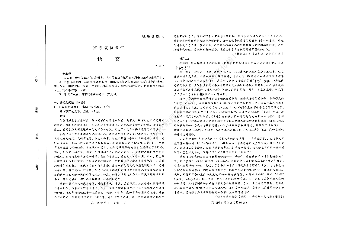 1山东省潍坊市2023.2高三年级第一次模拟考试语文