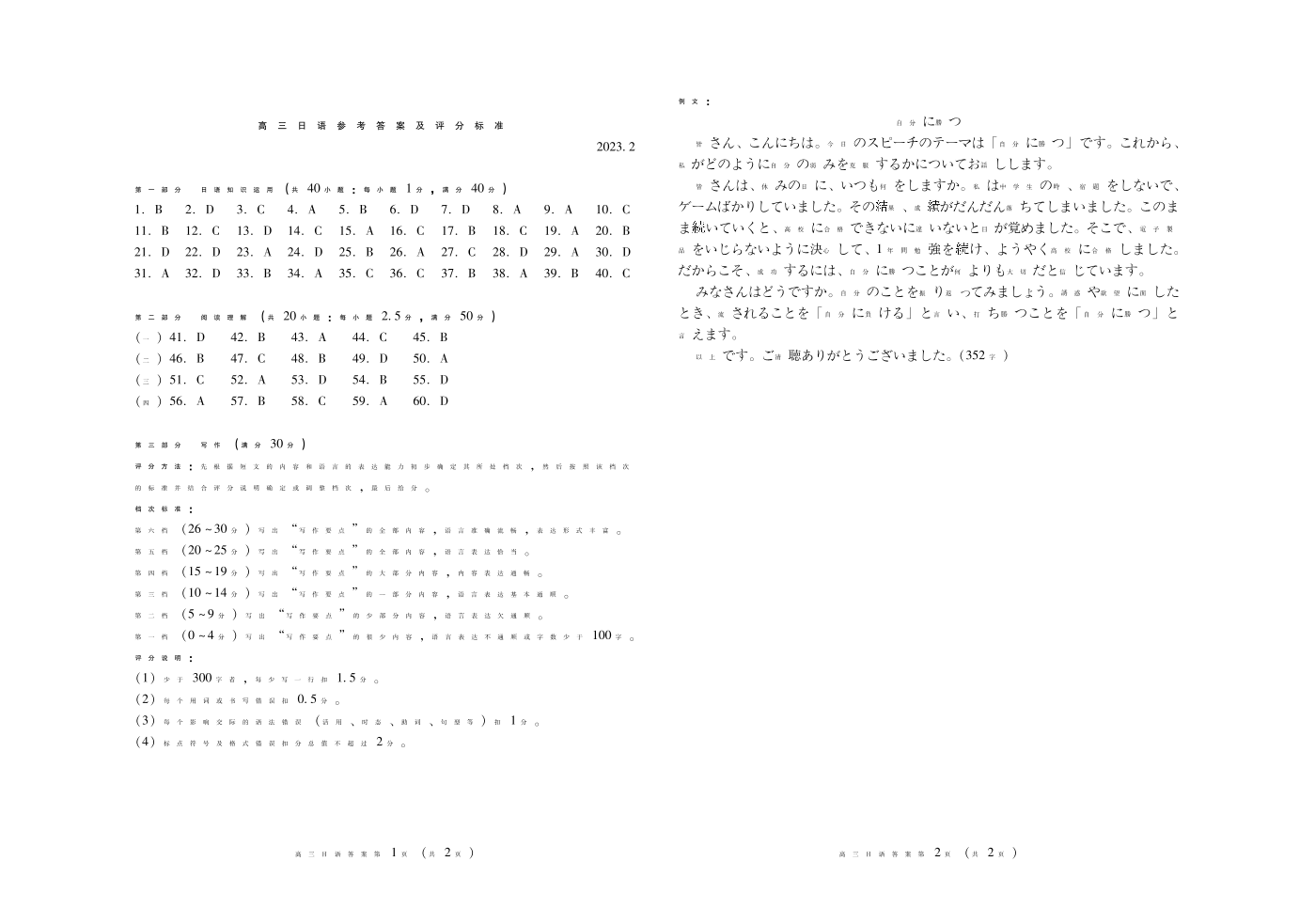 4山东省潍坊市2023.2高三年级第一次模拟考试日语答案