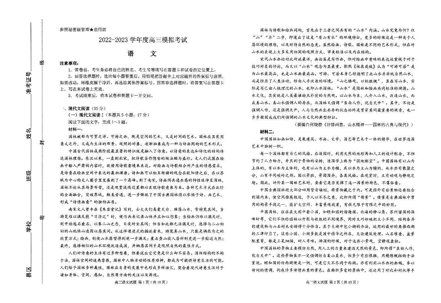 1山东省淄博市2023.2高三年级第一次模拟考试语文