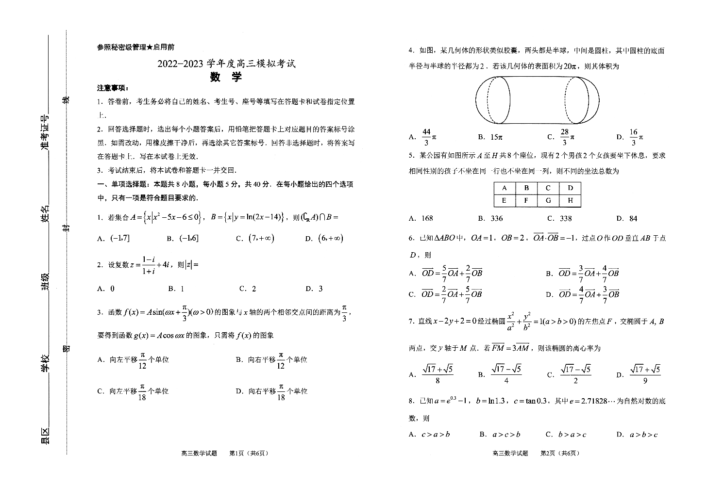 2山东省淄博市2023.2高三年级第一次模拟考试数学