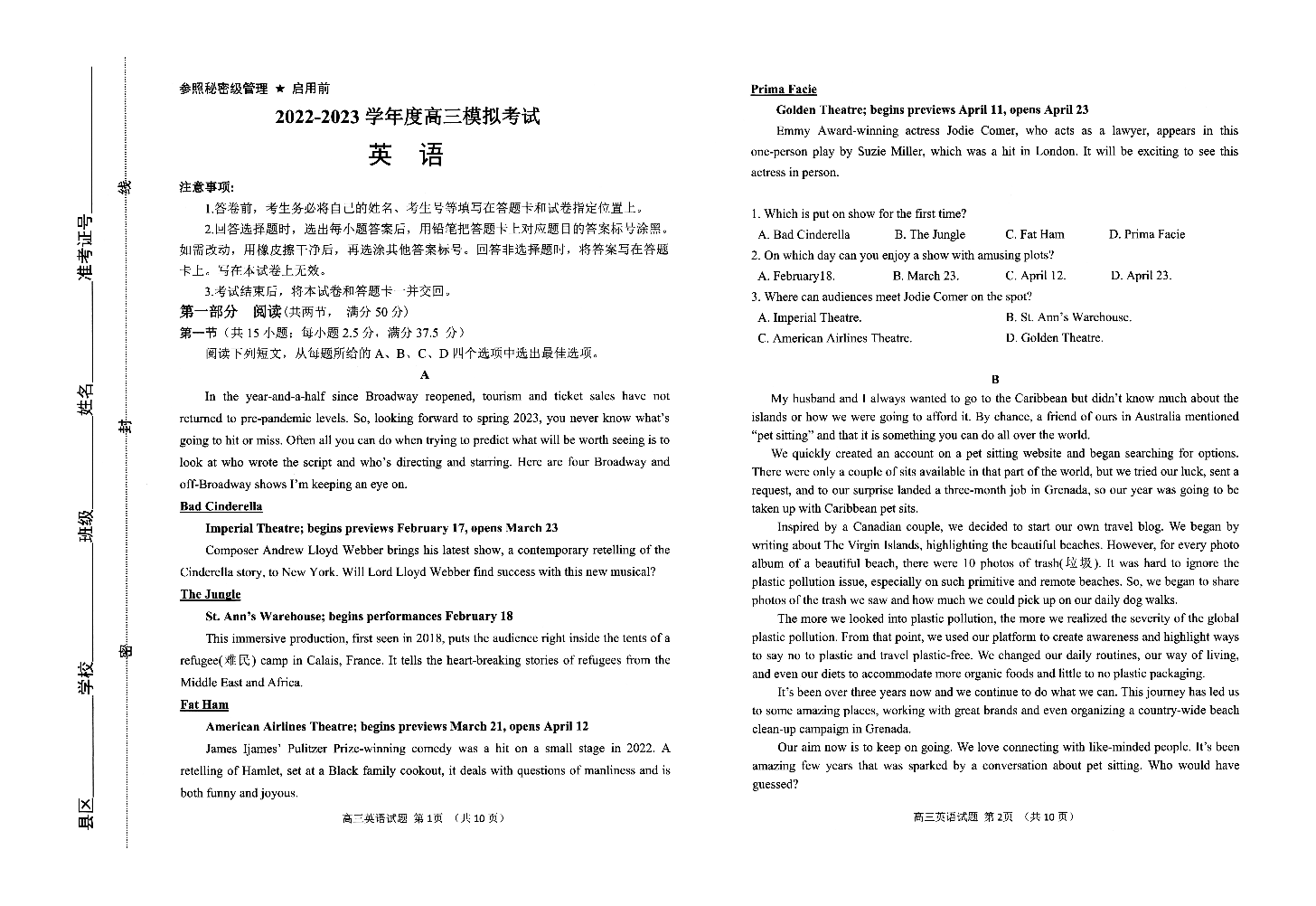 3山东省淄博市2023.2高三年级第一次模拟考试英语