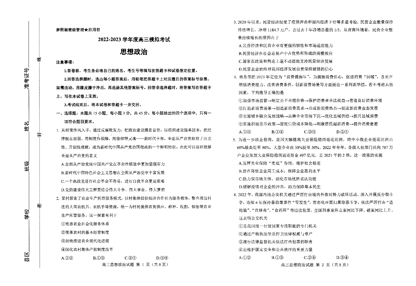 山东省淄博市2023.2高三年级第一次模拟考试政治