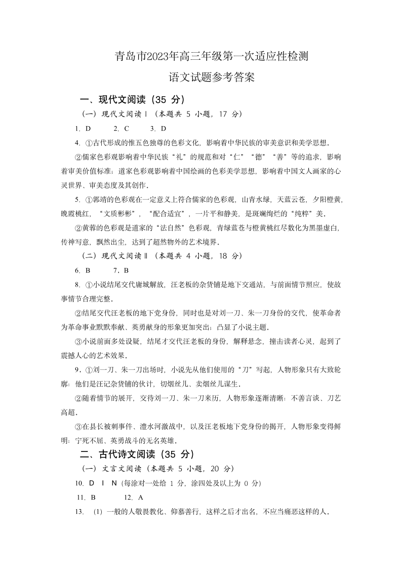1山东省青岛市2023.3高三年级第一次模拟考试语文答案
