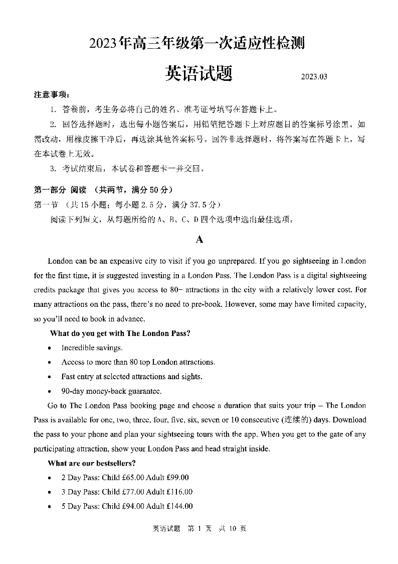 3山东省青岛市2023.3高三年级第一次模拟考试英语