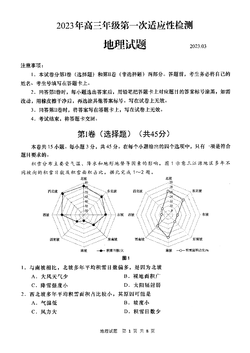 山东省青岛市2023.3高三年级第一次模拟考试地理