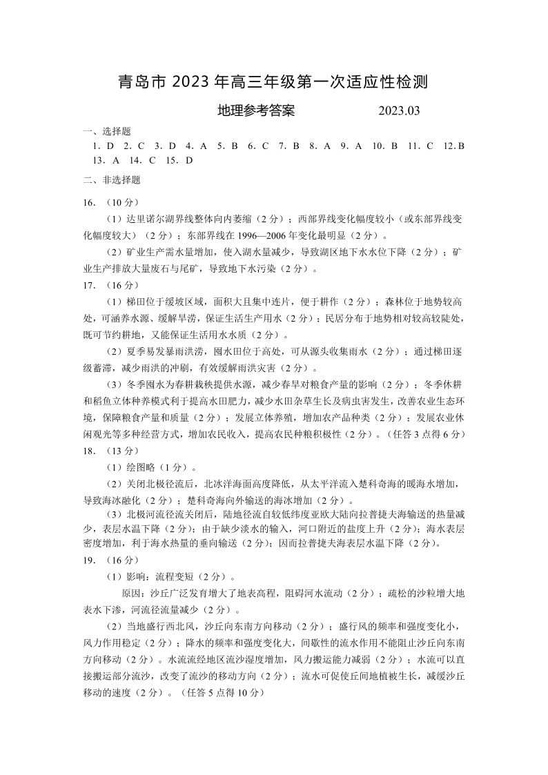 山东省青岛市2023.3高三年级第一次模拟考试地理答案