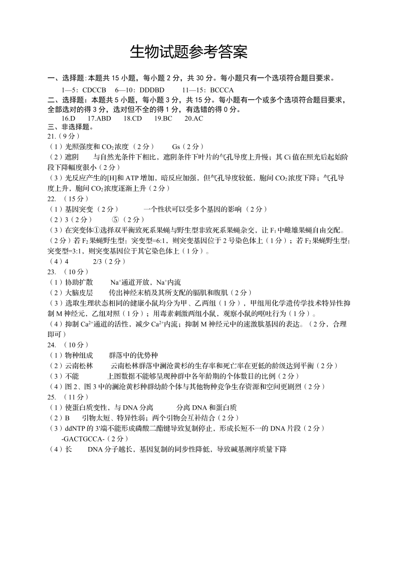 山东省青岛市2023.3高三年级第一次模拟考试生物答案
