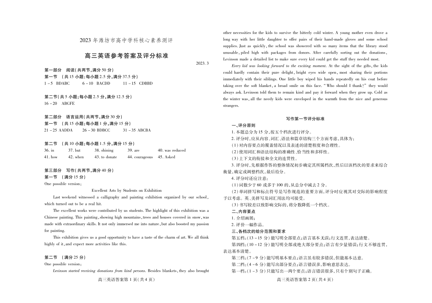 3山东省潍坊市2023.3高三年级优生素养测评英语答案