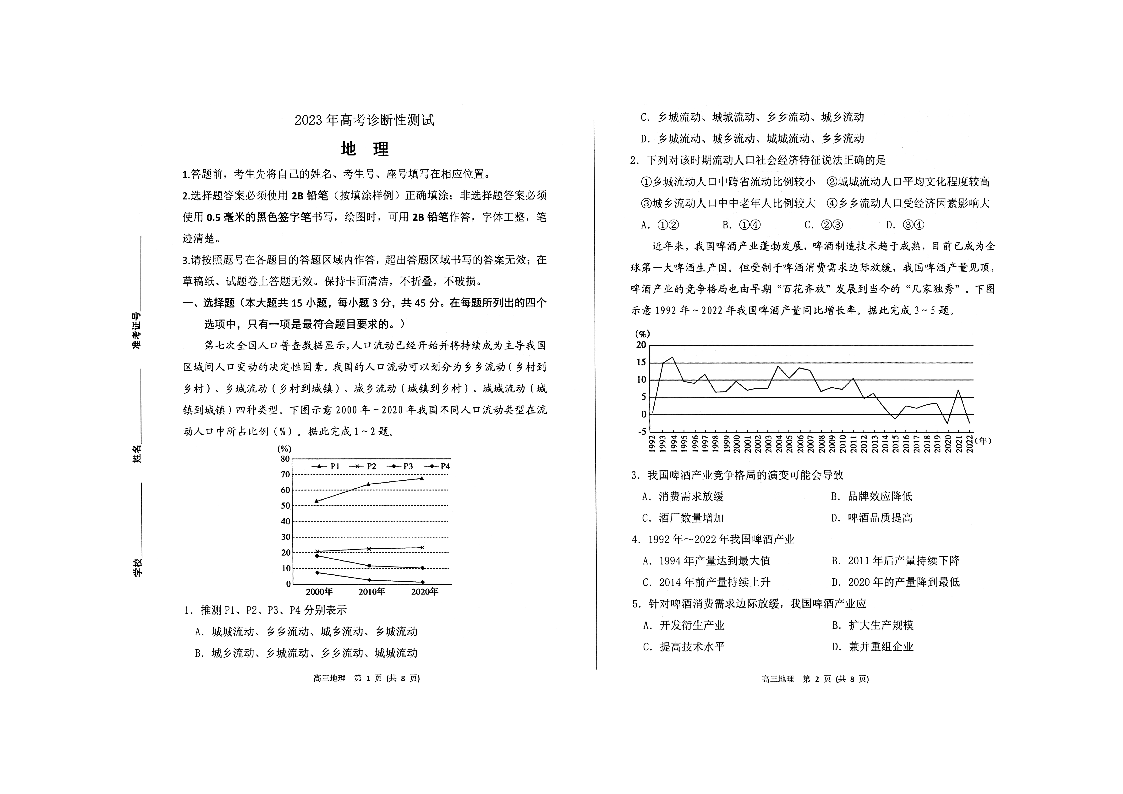 山东省烟台市2023.3高三年级第一次模拟考试地理