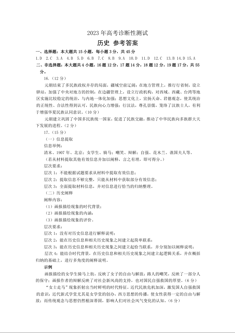 山东省烟台市2023.3高三年级第一次模拟考试历史答案