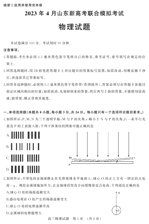 4山东省济南市2023.4高三年级第二次模拟考试物理