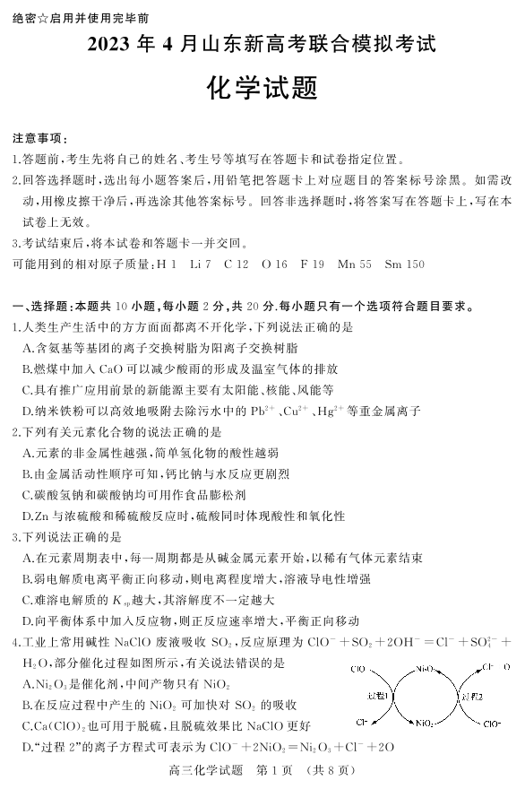 5山东省济南市2023.4高三年级第二次模拟考试化学