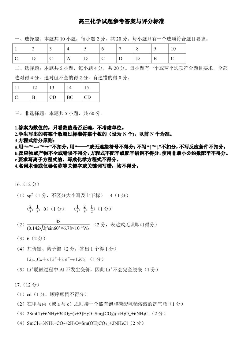 5山东省济南市2023.4高三年级第二次模拟考试化学答案