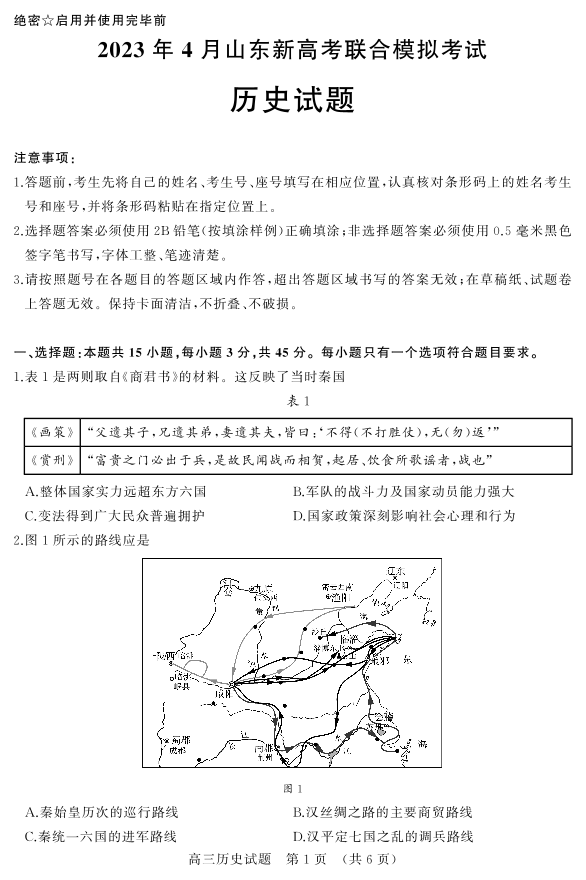 8山东省济南市2023.4高三年级第二次模拟考试历史